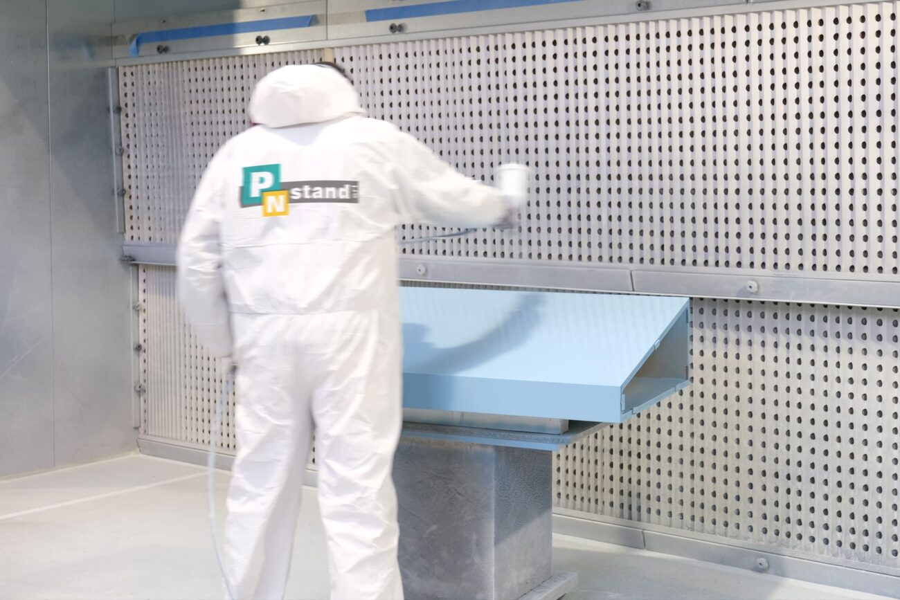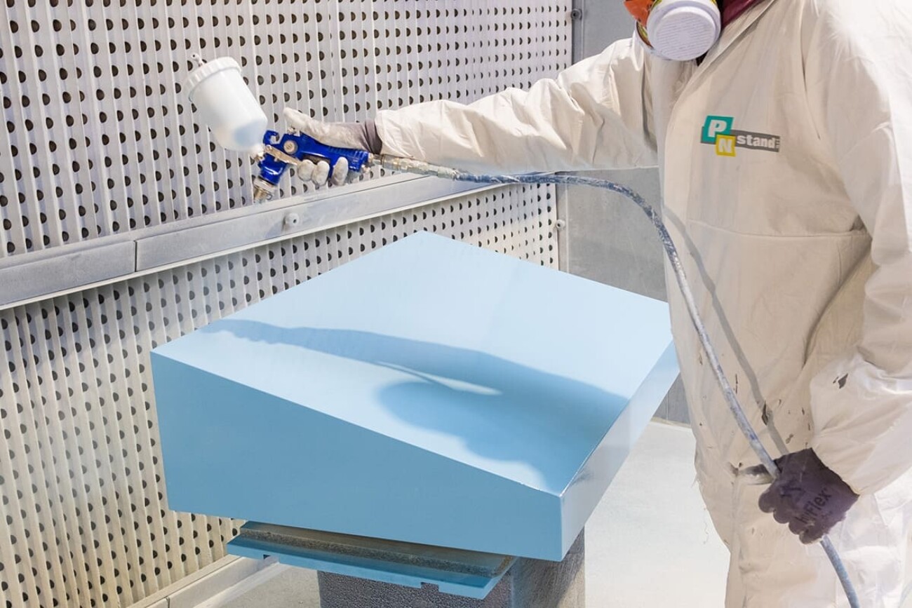 Per ottenere un risultato dalle finiture eccellenti ci occupiamo direttamente della laccatura di tutti i componenti dello stand con un reparto dedicato.